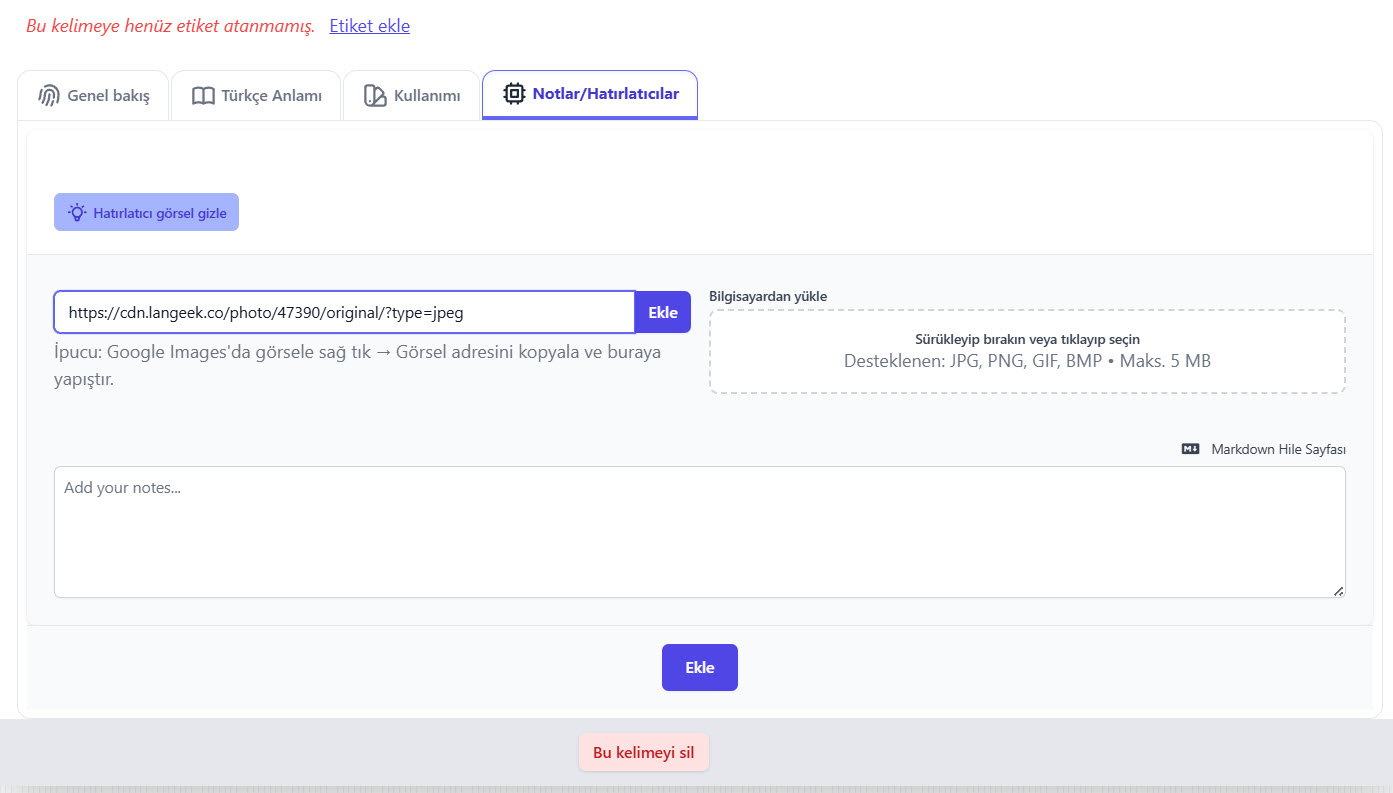 You add words to your notebook using the versatile dictionary within the platform. Dejavu dictionary is very different from traditional dictionaries. If you also write the sentence in which the word appears in the designated place in the dictionary, you'll learn the closest meaning of that word in the context of the sentence.
