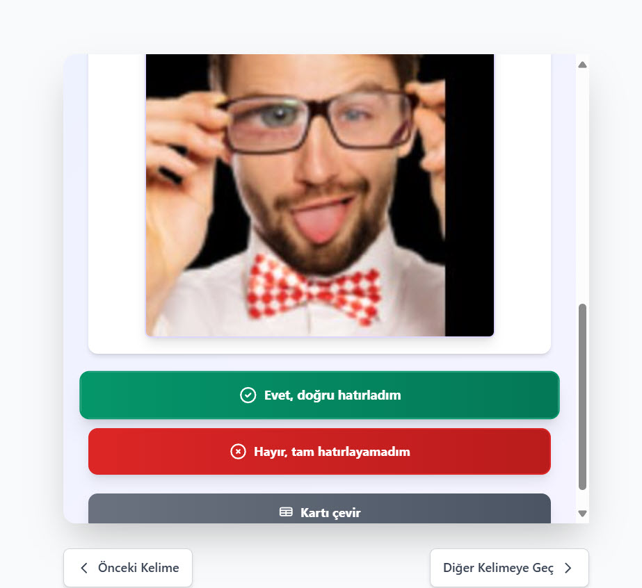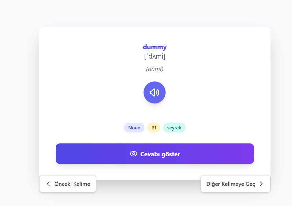 Based on your response, the system decides when to show you that word again. Words marked as hard appear more frequently, while easy ones appear at longer intervals. This way, you use your time most efficiently and embed words into your long-term memory.