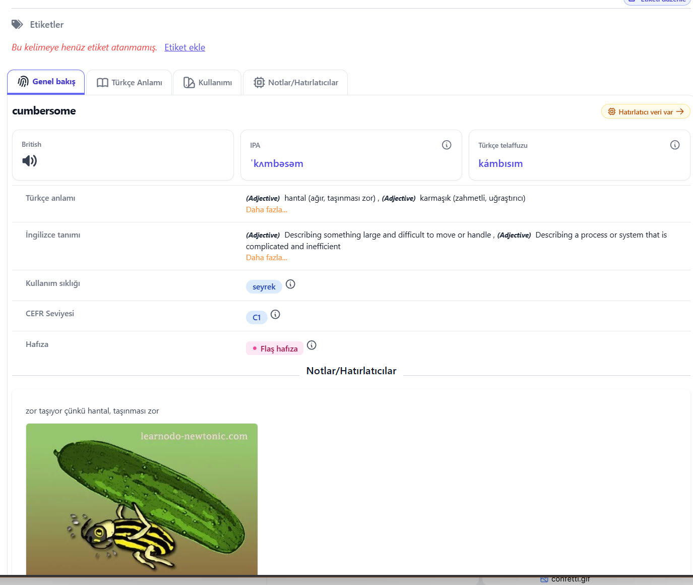 For example, when you copy any news article from BBC and paste it into this section and press Analyze, you'll be able to see which words you know at what level in the text with color codes. You can also quickly learn the meanings of underlined but uncolored words in the context of the sentence by clicking on them, thanks to the Dejavu Dictionary, and add them to your word notebook if you need.