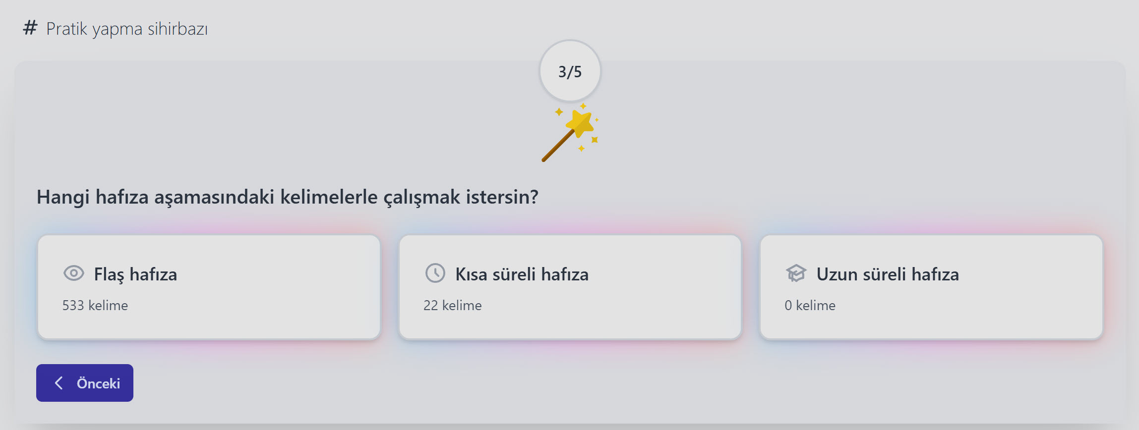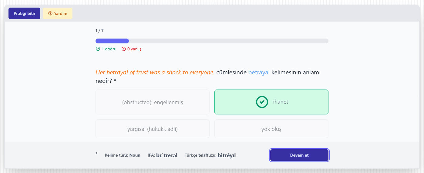 Günün görevleriyle pratik yaptıktan sonra isterseniz antreman odası sayesinde defterinizdeki diğer ifade ve kelimelerle pratik yapmaya devam edebilirsiniz.
