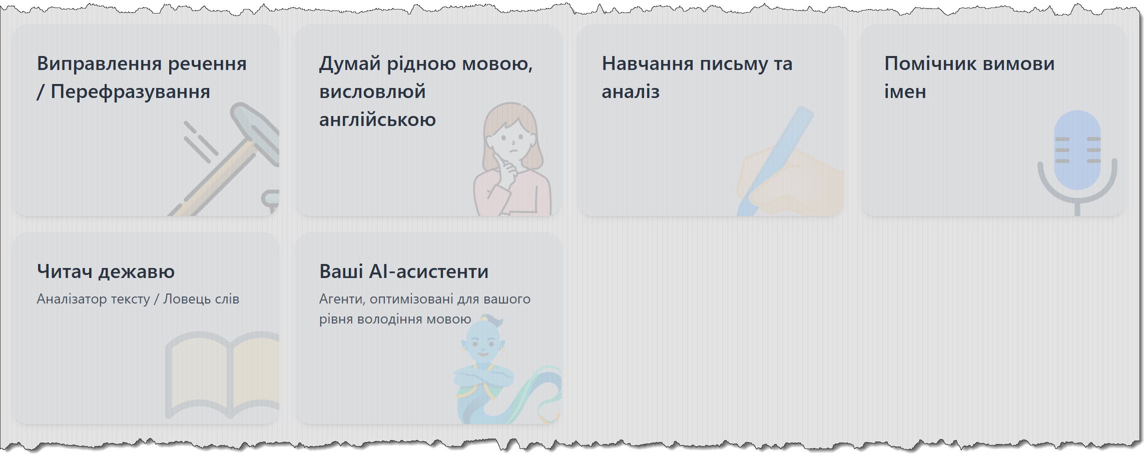 На відміну від інших додатків для чату з ШІ, Dejavu English був оптимізований з урахуванням вивчення мови користувачем і працює у взаємодії з вашим словником у вашому порталі. Ці аспекти надають йому унікальну особливість.