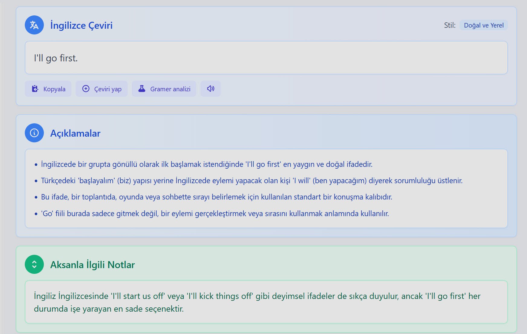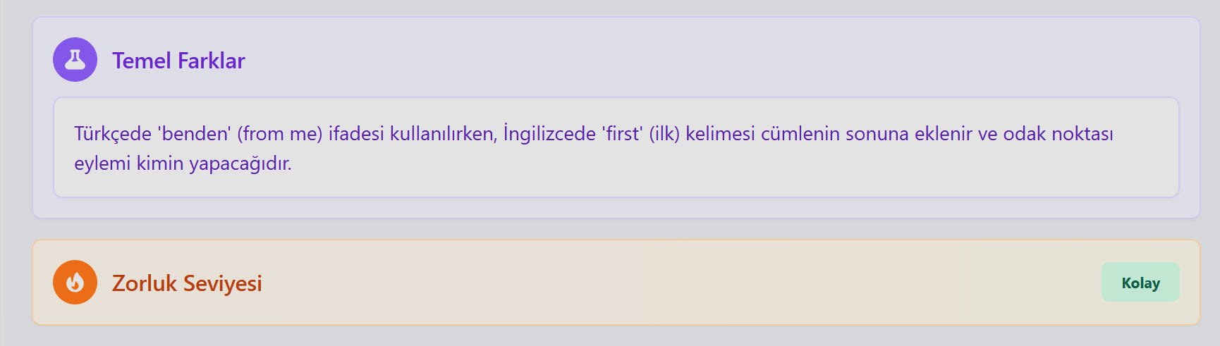 In short, this feature is more than a translation tool. It’s a powerful guide for anyone who wants to learn English through its natural way of thinking. By showing not only the correct expression but also why it should be expressed that way, it makes the learning process more conscious, faster, and longer-lasting.